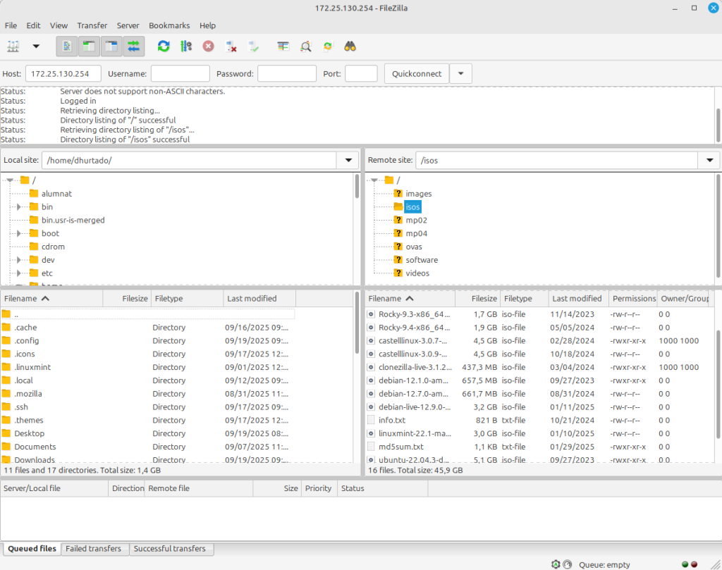 Para poder acceder a la iso proporcionada por el professorado primero tengo que entrar en el filezilla.