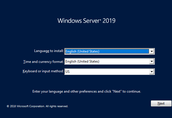 Una vegada entras a w2k19, poses el idioma en àngles i US, perquè ès l’unica que deixa