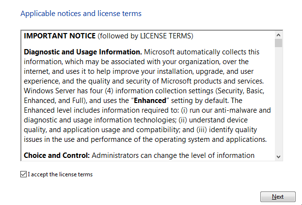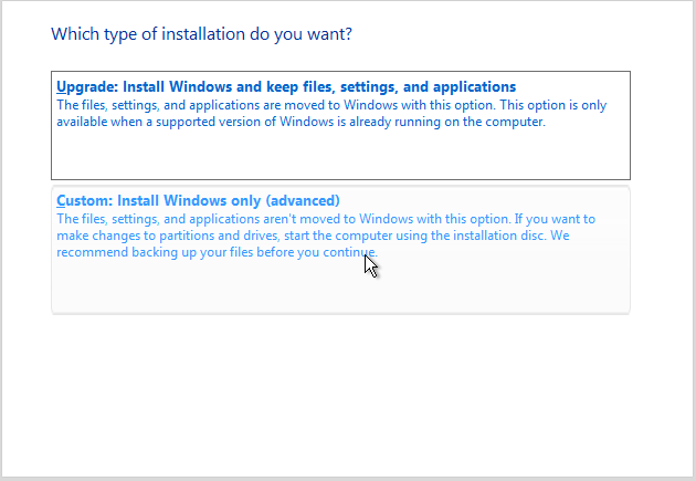 Desprès acepta les licencia terms. Per últim esculls costum i no upgrade i ja tindries la instal·lació feta.